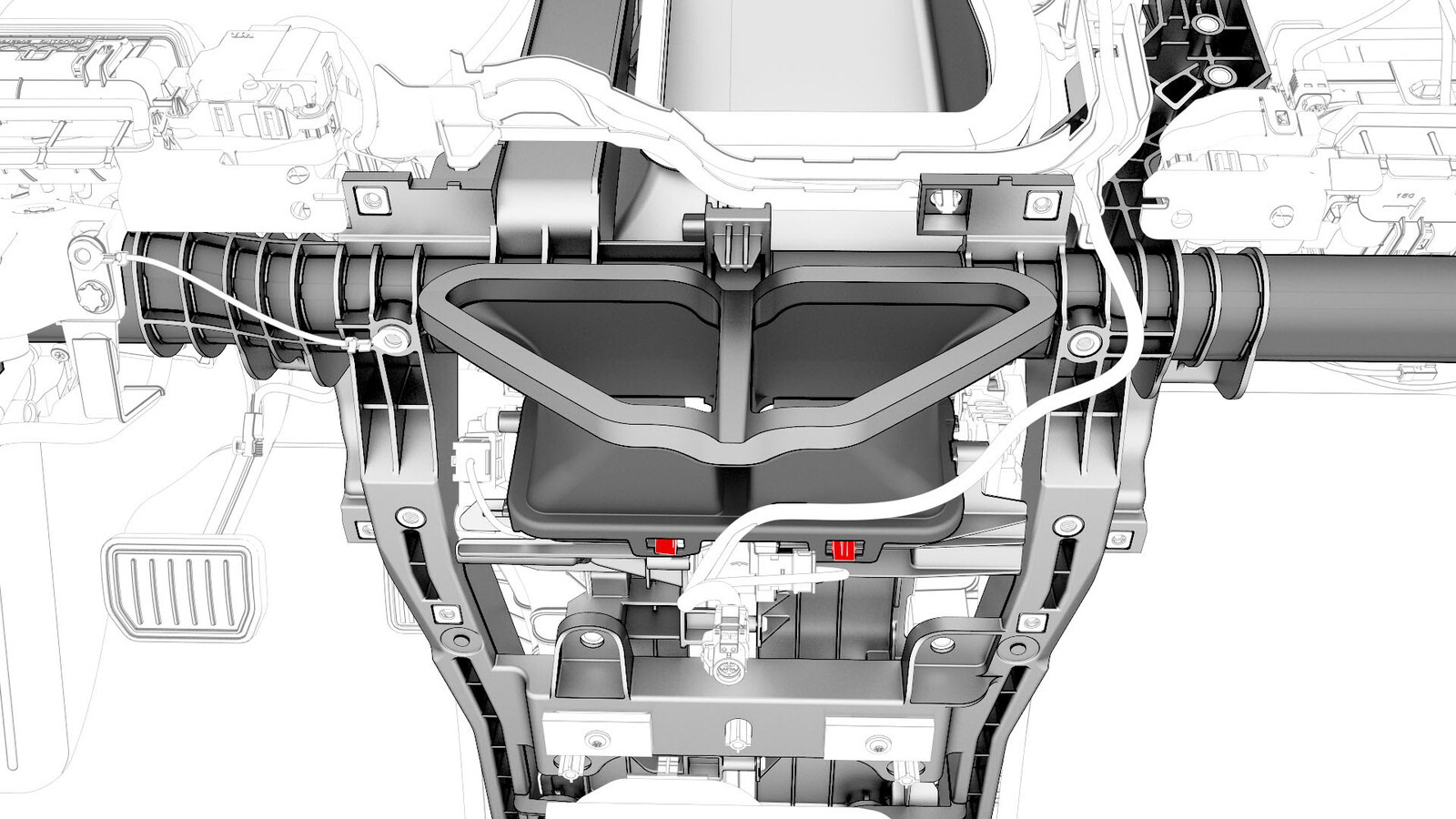 - 拆卸 HVAC 气室内管。请参阅风管 - 暖通空调 (HVAC) 集气室 - 内(拆卸和更换)