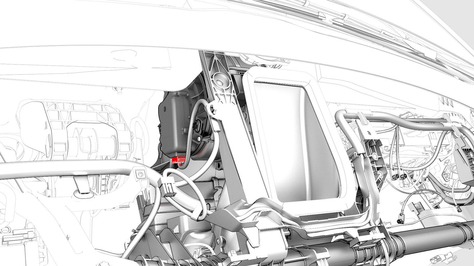 - 拆卸左侧气波管道。请参阅管道 - 气波 - LH(左侧驾驶)(不带加热泵款)(拆卸和更换)。