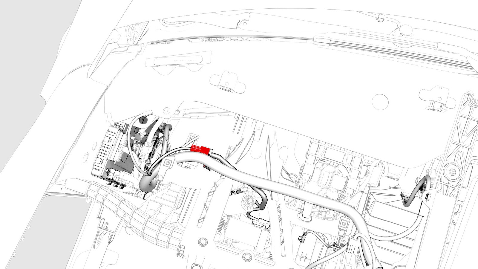 - 松开将电气线束固定到挡风玻璃清洗器储液罐的夹子。