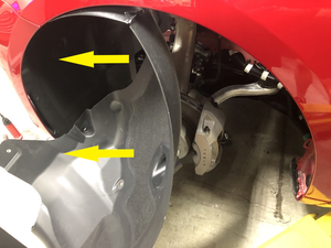 注拆卸之前用于紧固左前轮拱的 2 个卡子。