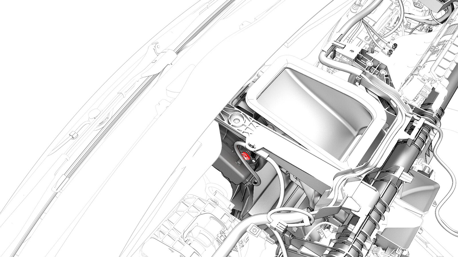 - 将挡风玻璃清洗器储液罐安装到正确位置,然后将电气线束连接到挡风玻璃清洗器储液罐连接器。