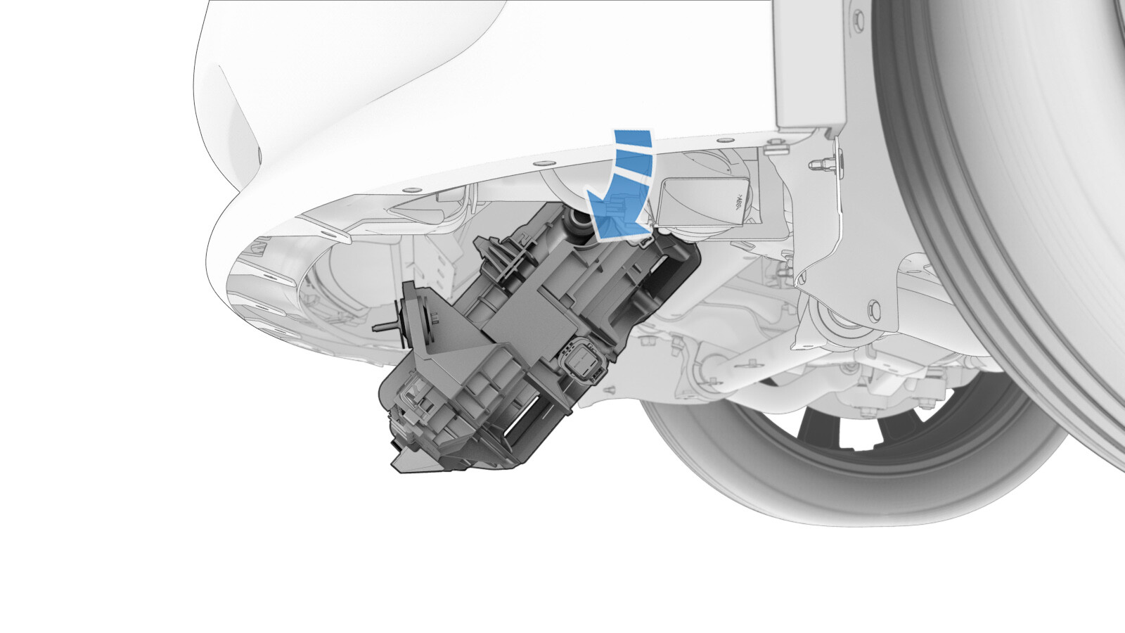 - 连接环境温度传感器电气连接器,然后将传感器盖安装到主动进气格栅上。