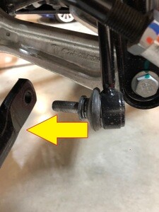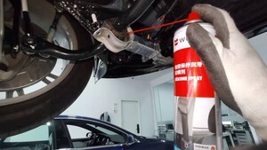 安装新的螺母,将平衡杆固定到副车架,紧固后,使用油性记号笔标记螺母。