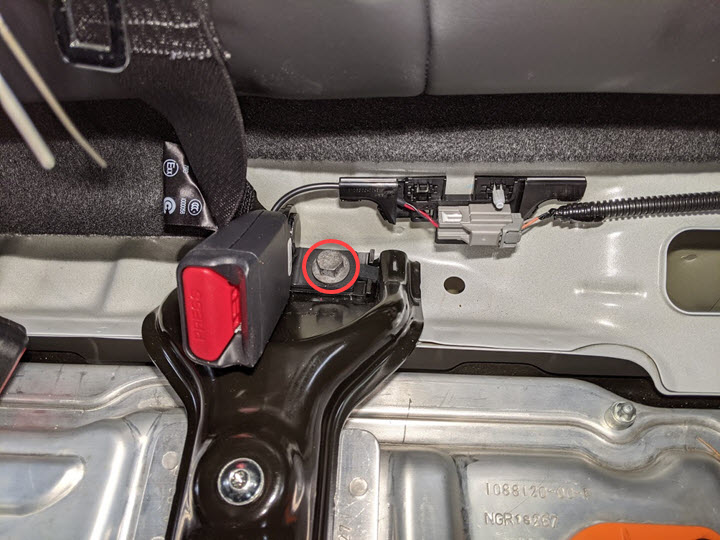 安装新的螺栓,将第二排左侧锁扣固定到车身。