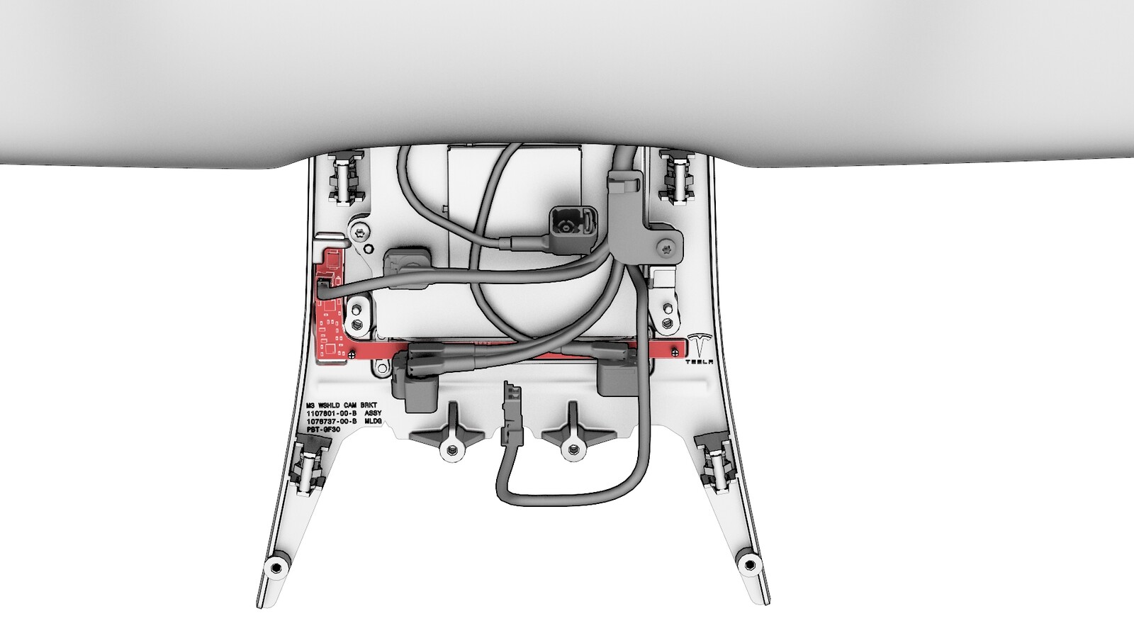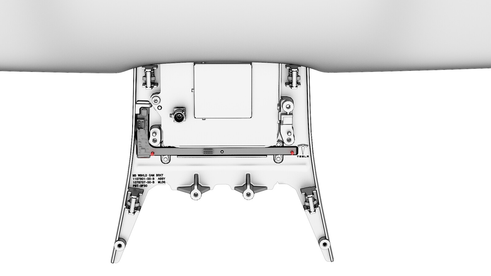 将三摄像头总成放置到挡风玻璃支架上,然后安装将总成固定到挡风玻璃支架的螺钉(4 个)。