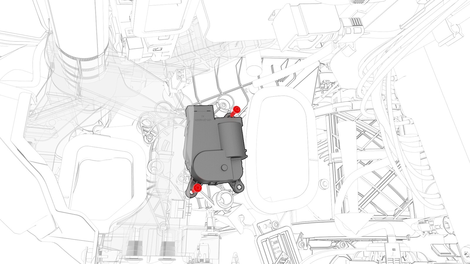 - 拆下将上部模式执行机构固定到供暖、通风和空调总成的螺栓,然后拆下上部模式执行机构。