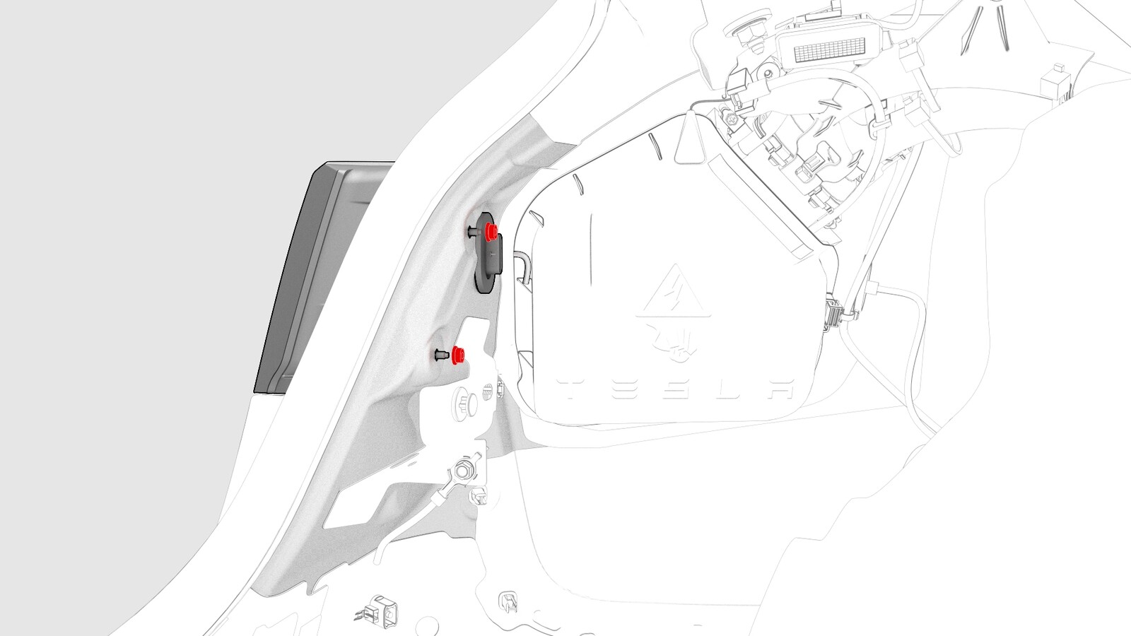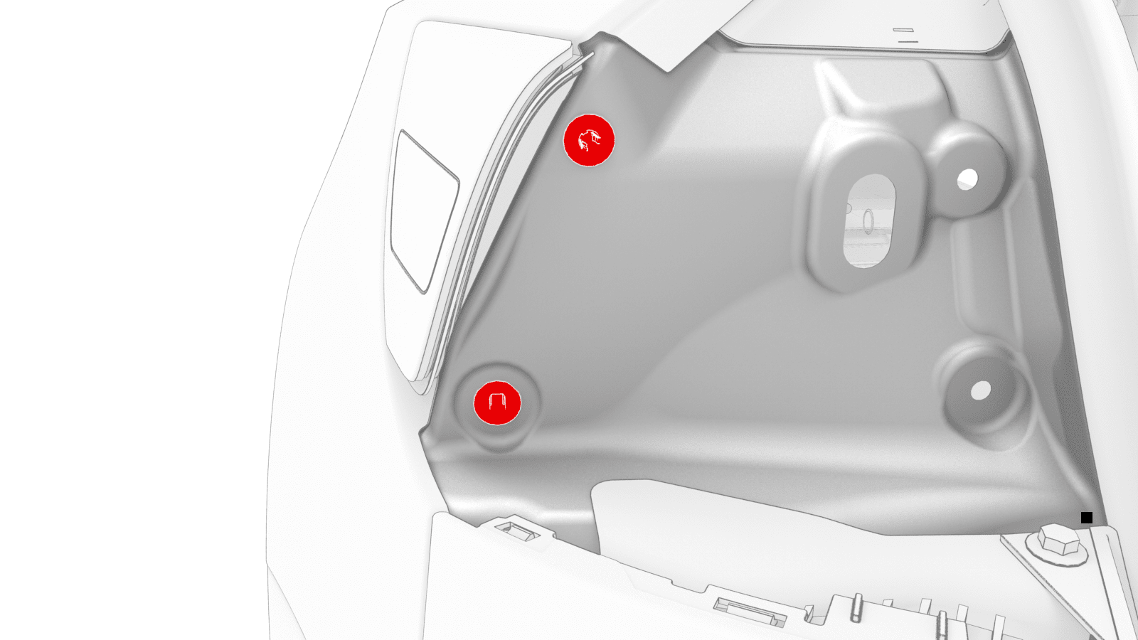 - 将行李箱饰板毡毯塞回原位。
