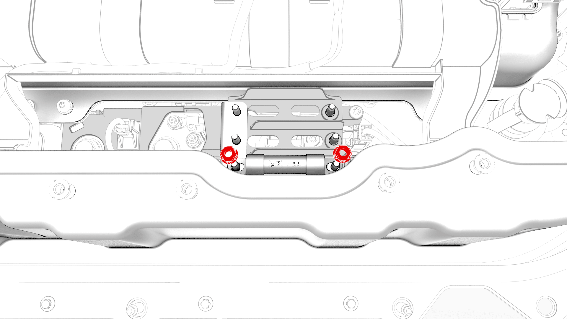 将正温度系数加热器保险丝安装到右侧高压电池仓母排上,然后安装新的螺母,将保险丝固定到母排上。