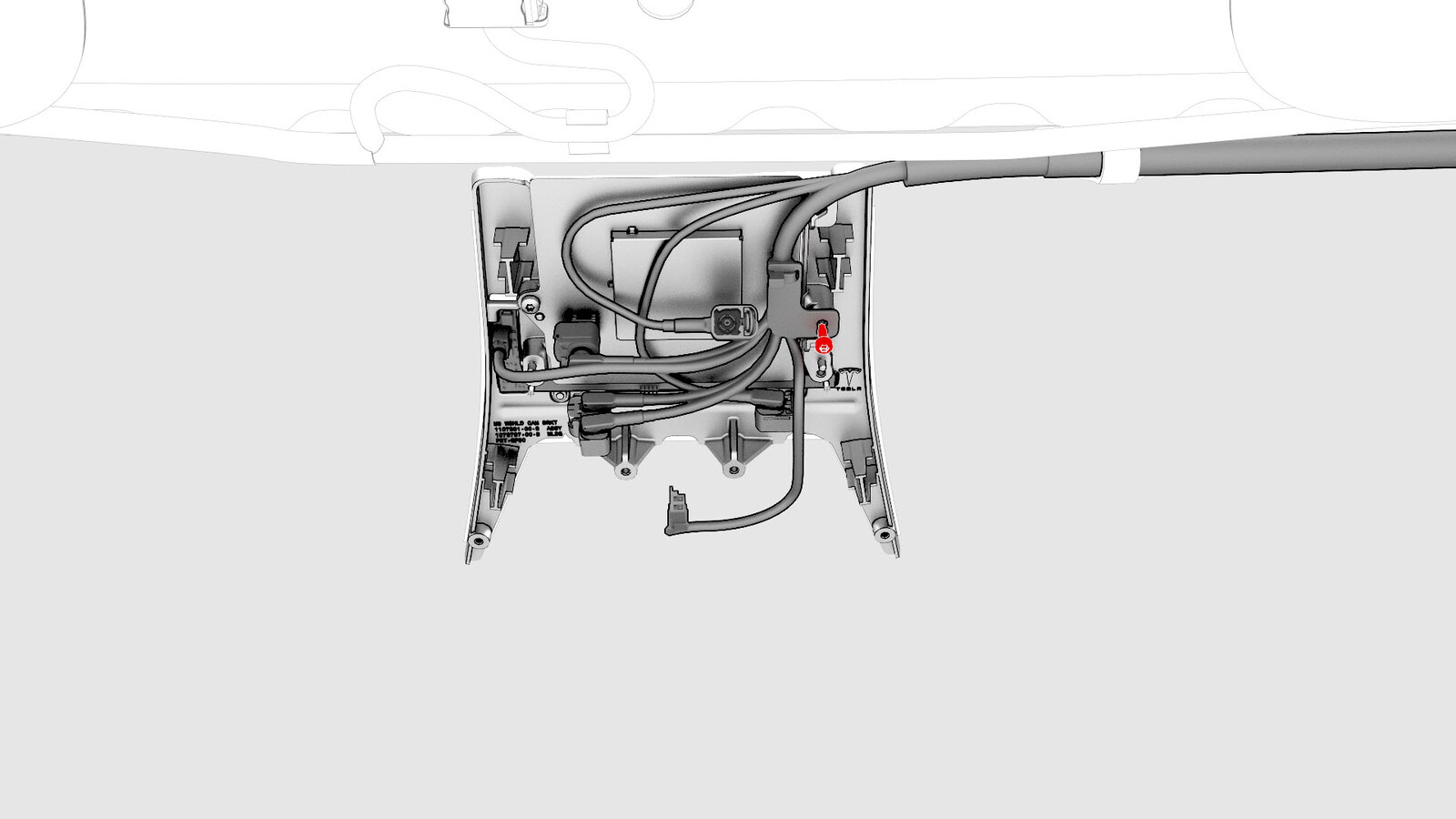 注无需将电气线束从三摄像头总成上断开。拆下将三摄像头总成固定到车辆的紧固件后,请使总成悬挂在线束上。