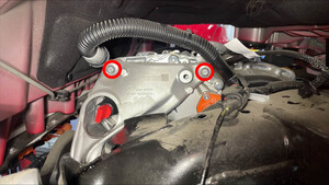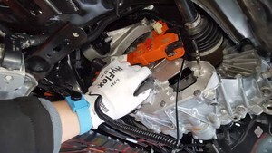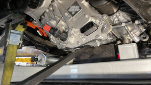 - 向前倾斜副车架固定装置以便能够到电机支座紧固件。