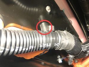 - 松开卡子,断开后驱动单元变流器至热交换器软管与后驱动单元变流器出口的连接,然后立即塞住两个接头。