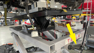 - 将副车架举升工具放置在后副车架下方,并向上靠在后副车架上。