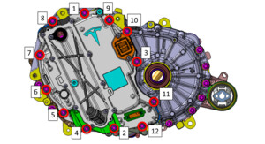 - 拆卸将后驱动单元变流器固定到后驱动单元变速箱的螺栓(12个)。