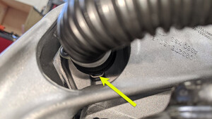 - 松开卡子,从高压电池处断开后驱动单元变流器入口软管,然后立即塞住两个接头。