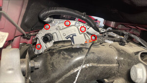 - 拆卸将右侧剪力板固定到高压电池的小号螺栓(2 个)。