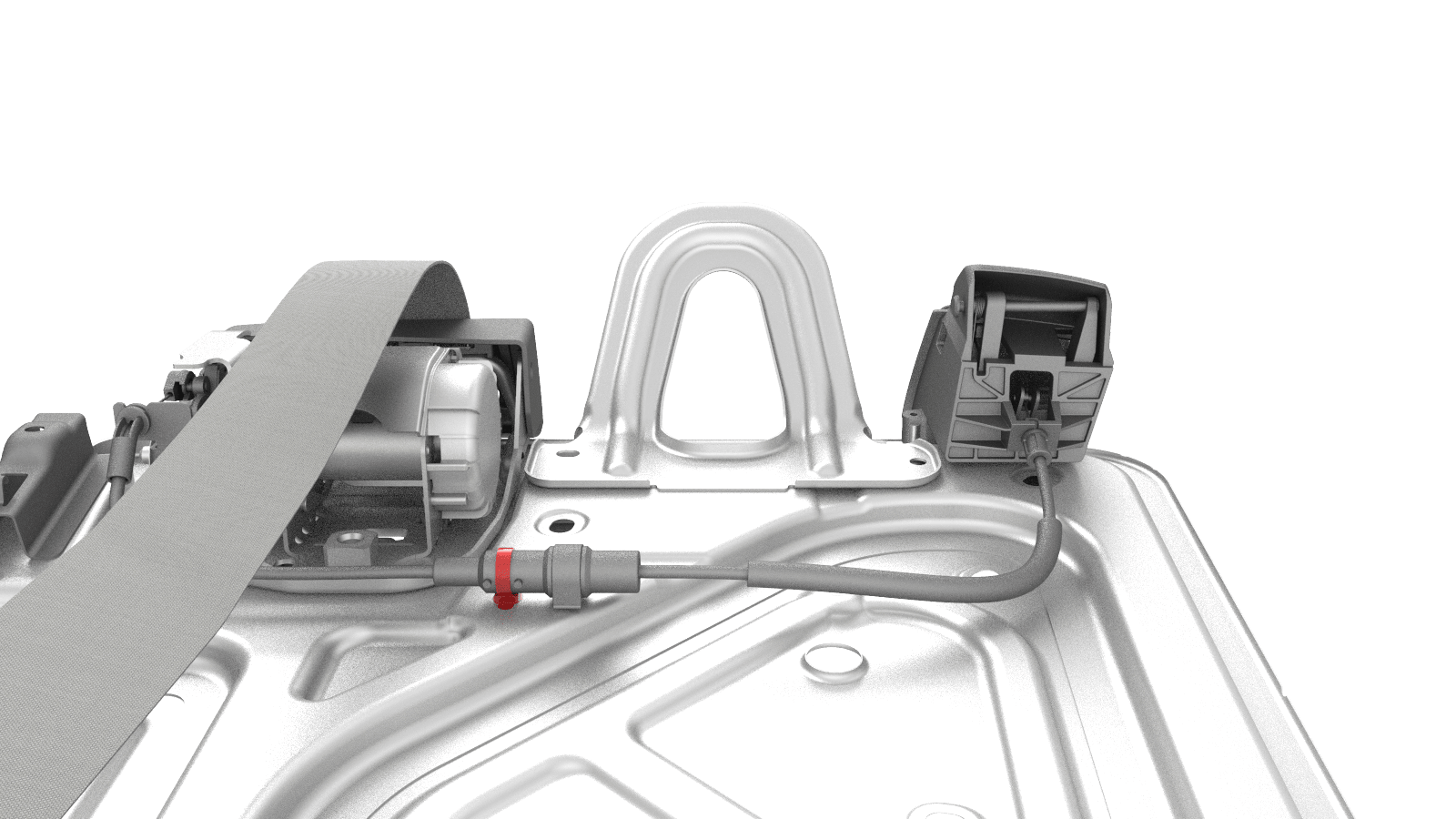 - 将电气线束连接至左后座椅安全带锁扣连接器。