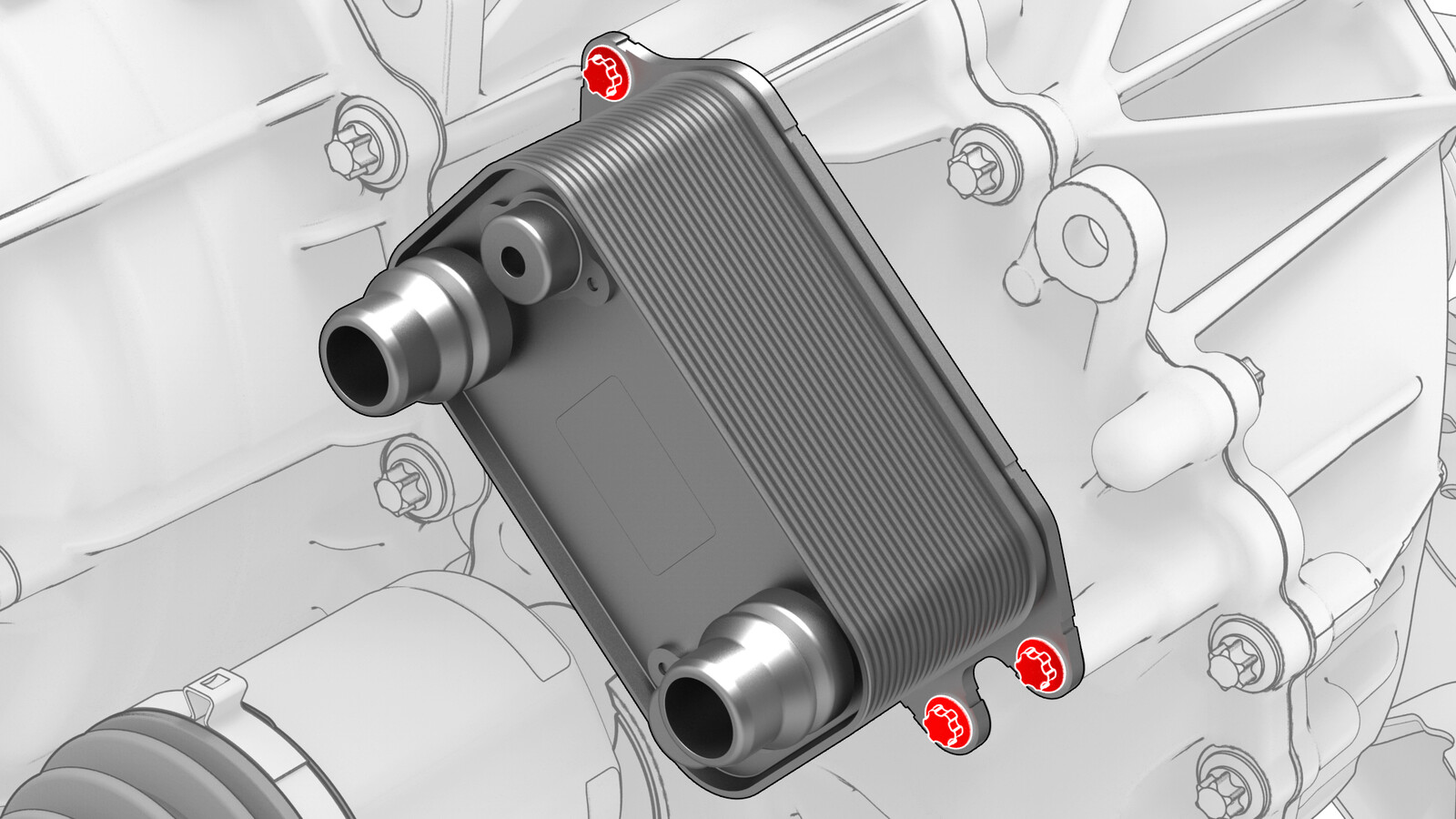 - 将热交换器安装到前驱动单元上,然后将其压紧入位。