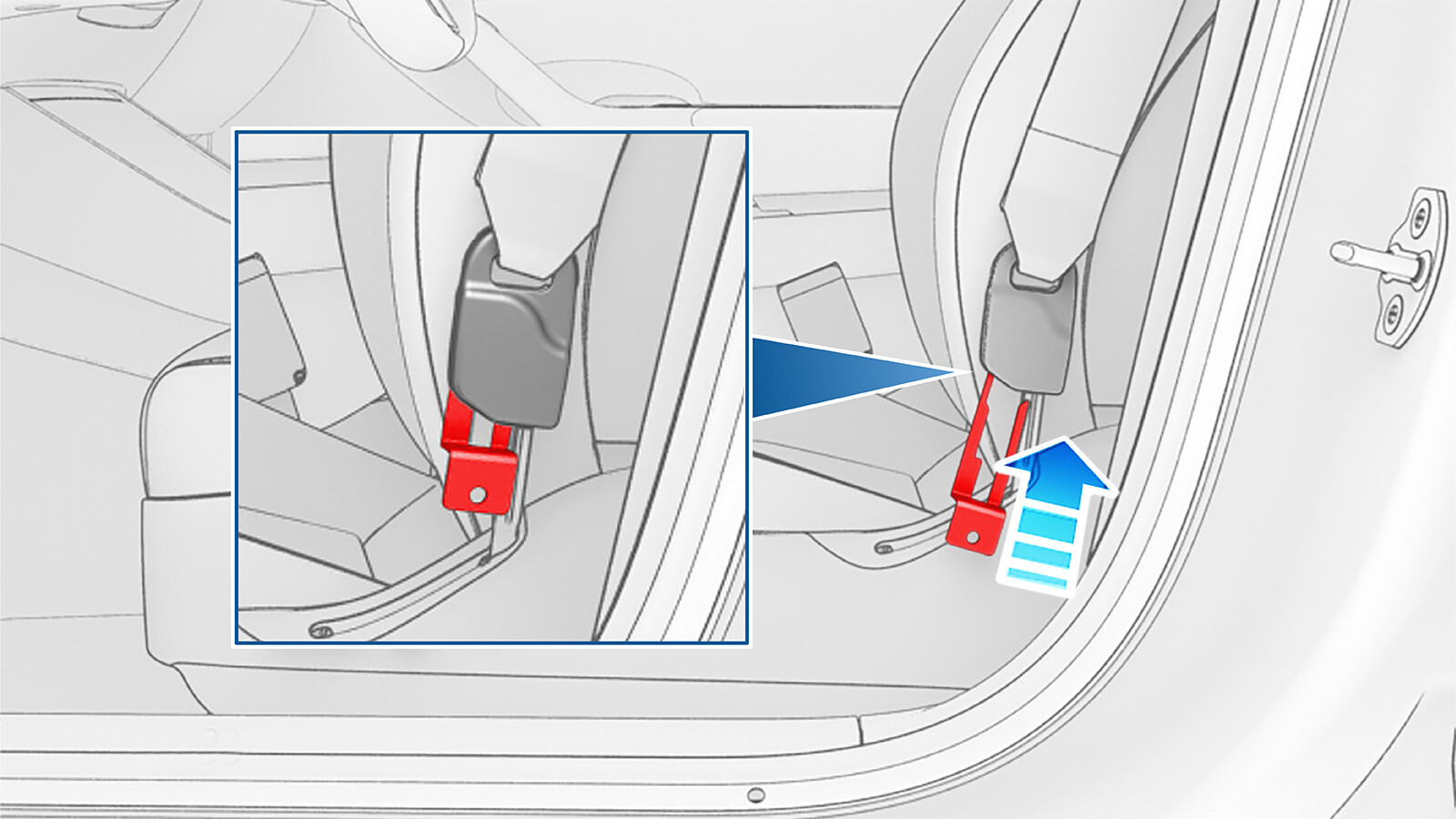 - 将安全带释放钥匙 (1133787-00-A) 插入到安全带预紧装置耦合的底部,以从预紧装置中松开安全带。