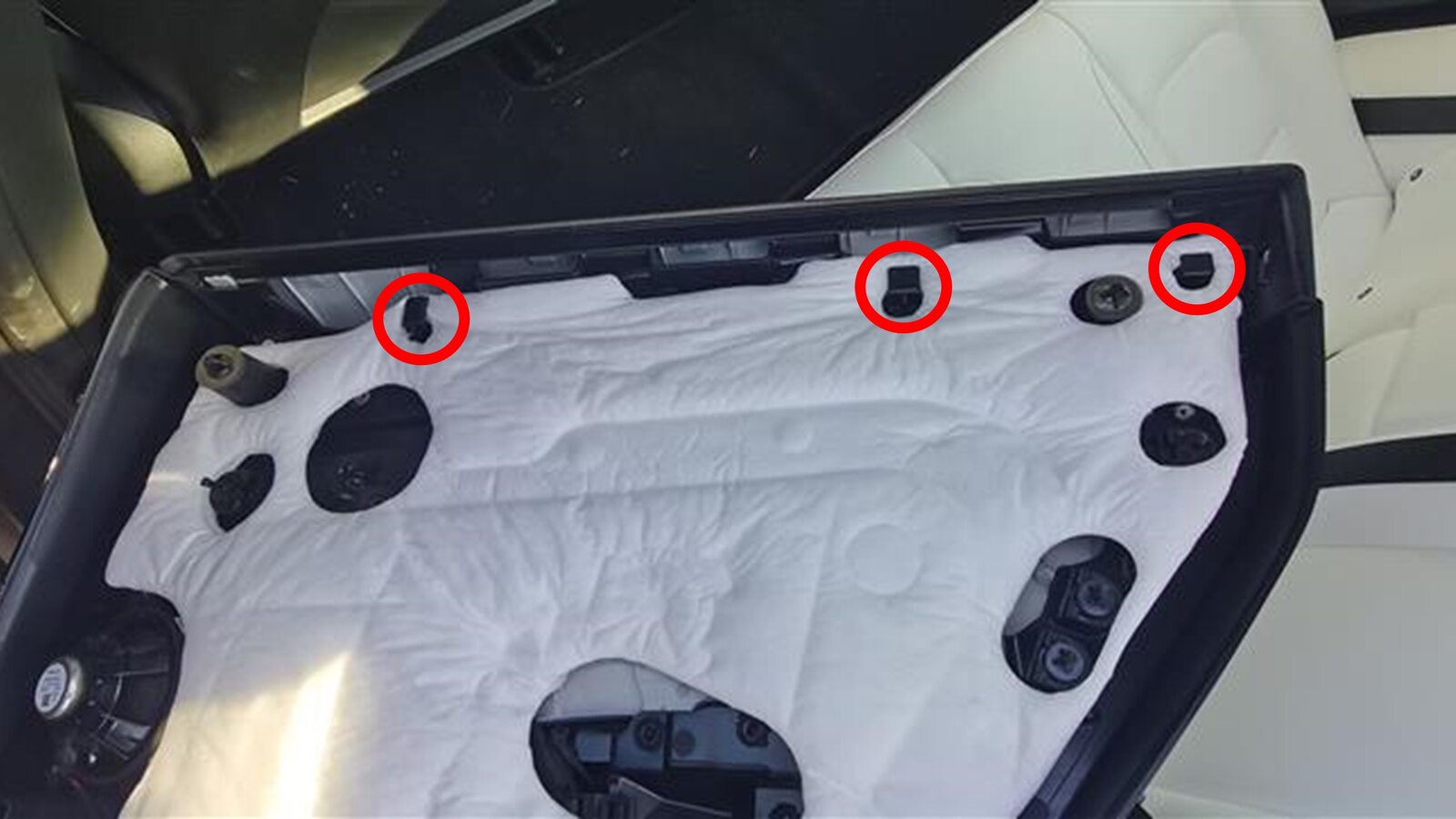 松开锁片 (x3),然后从 LH 后车门饰板上拆下 NVH 垫。