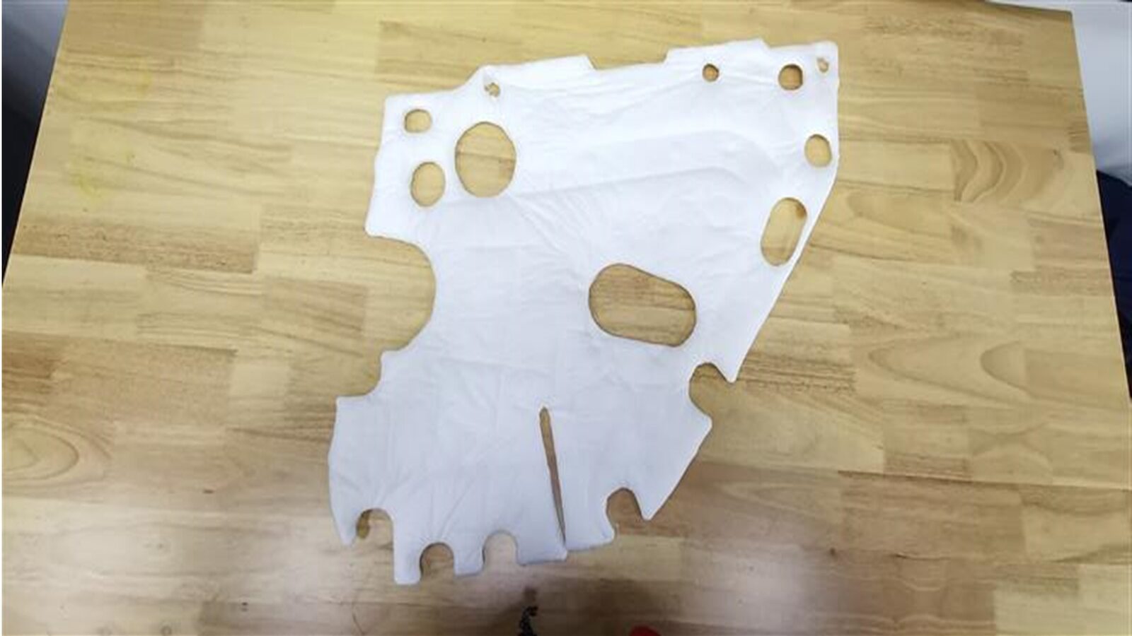 警告小心撬动,注意请勿损坏塑料铆钉。如果铆钉受损,车门饰板完整性也会受损。警告维修时,如果塑料铆钉受损,则请更换车门饰板。 - 将 NVH 垫安装到后车门饰板上,然后用锁片 (x3) 固定该垫。