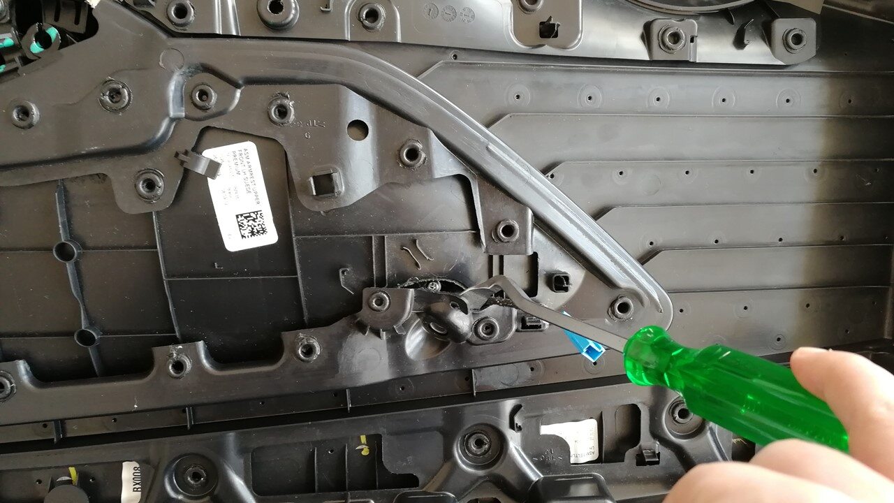 注建议请助手帮忙固定住车门饰板。注不要拆下车门电气连接器和夹子。