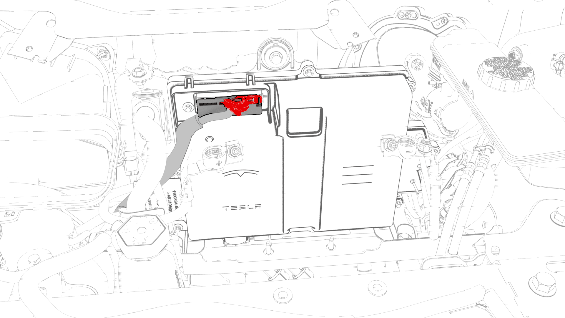 - 拆下 12V 辅助电池。请参阅12V/低压电池(拆卸和更换)。