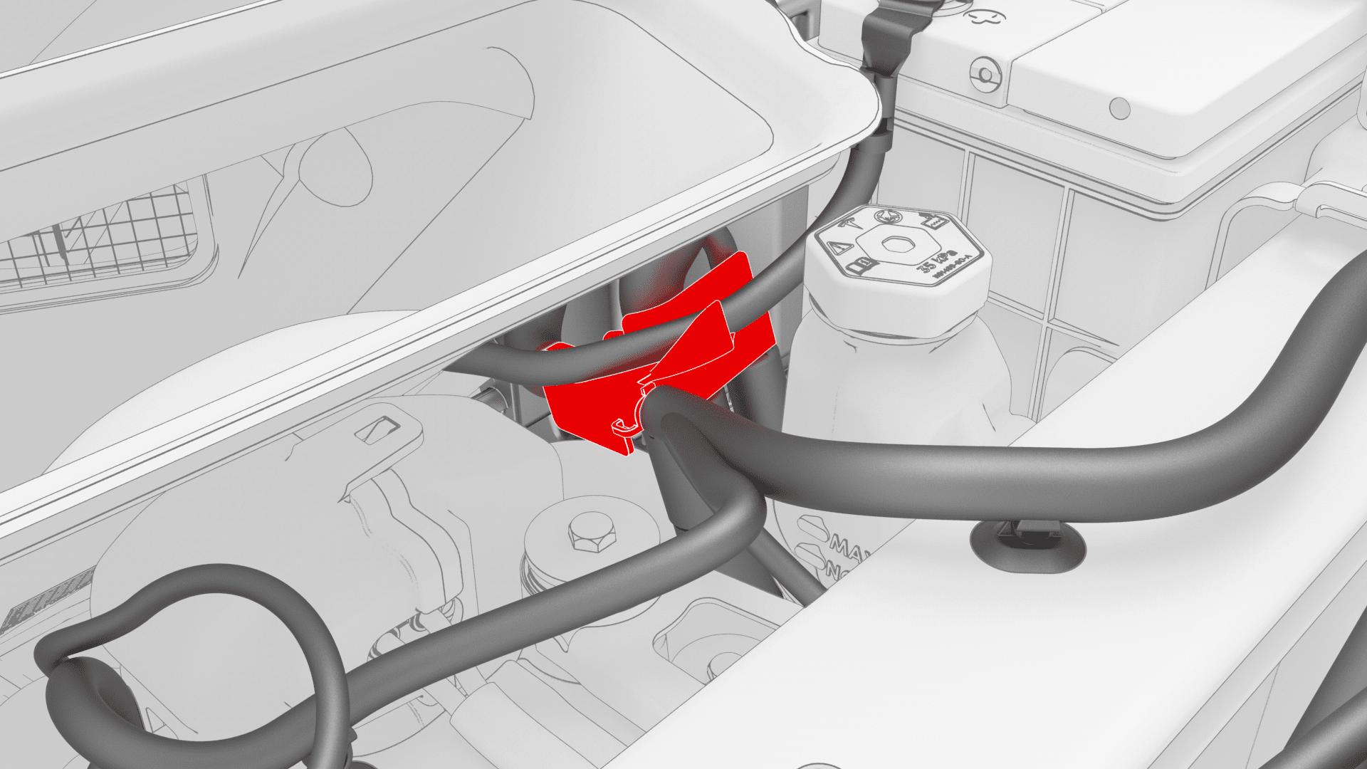 - 松开将吸入/液体管固定到热力膨胀阀周围车身上的夹子,然后将电气线束放置一旁,以便为前车身控制器模块留出空间。
