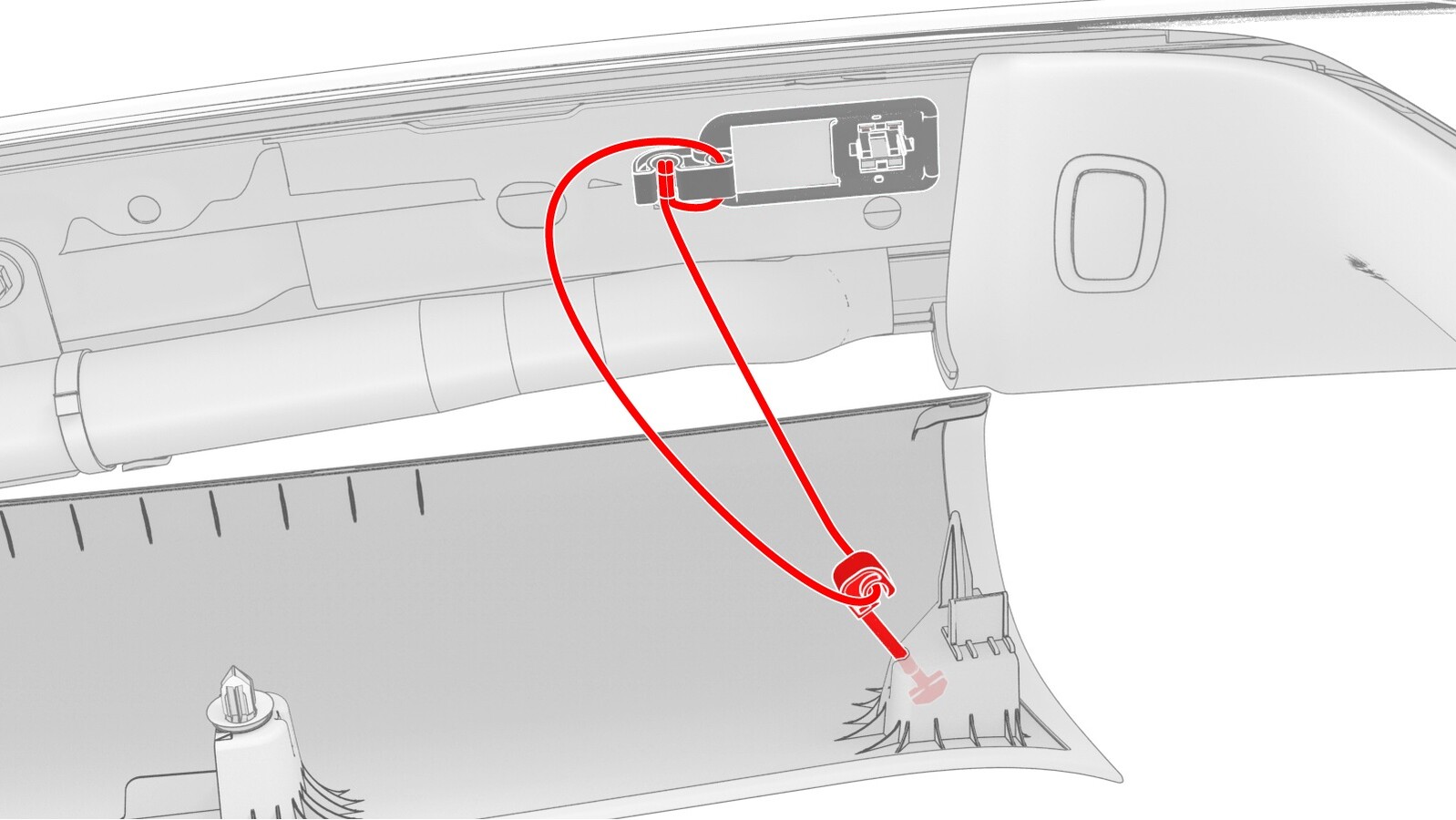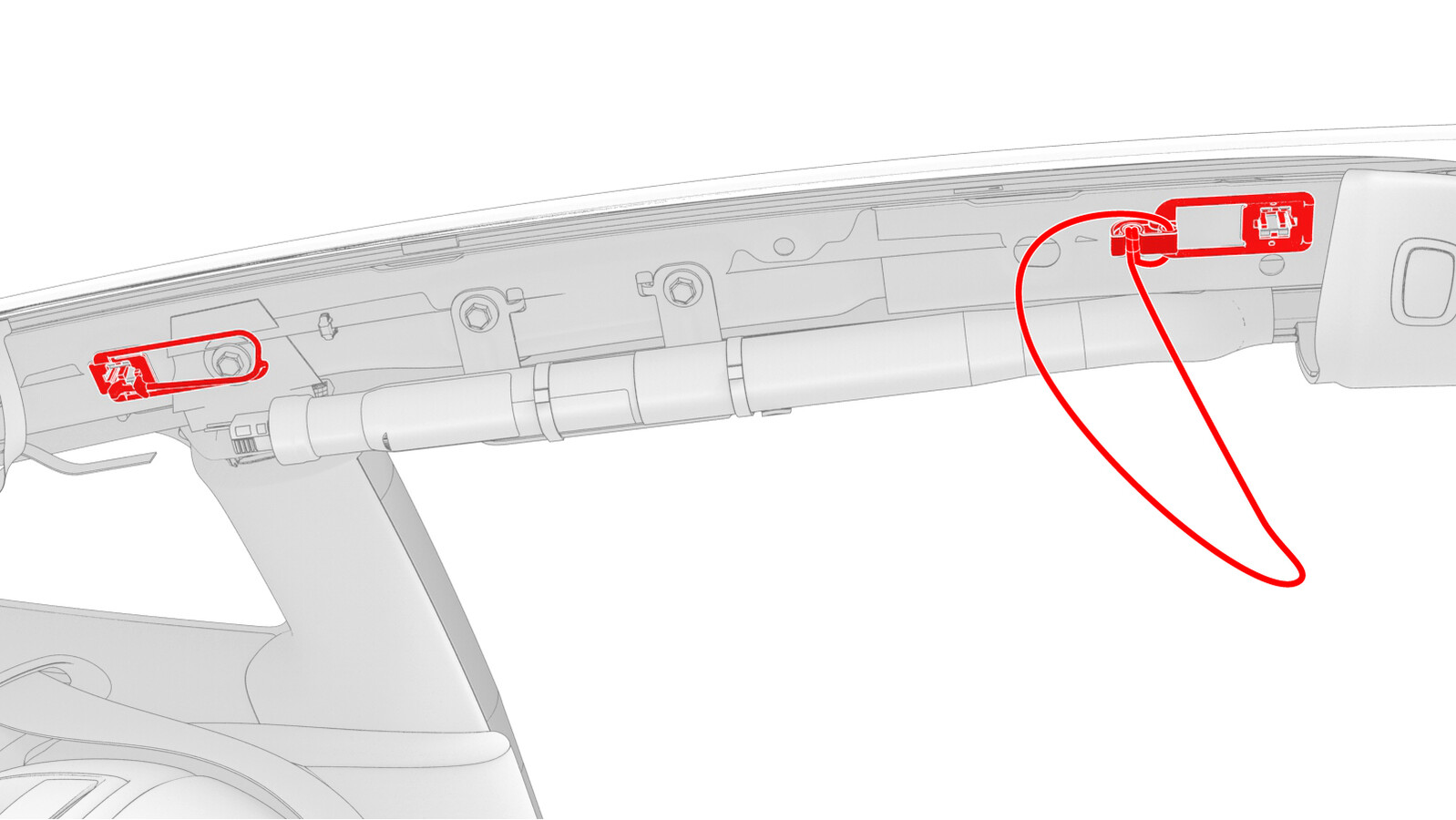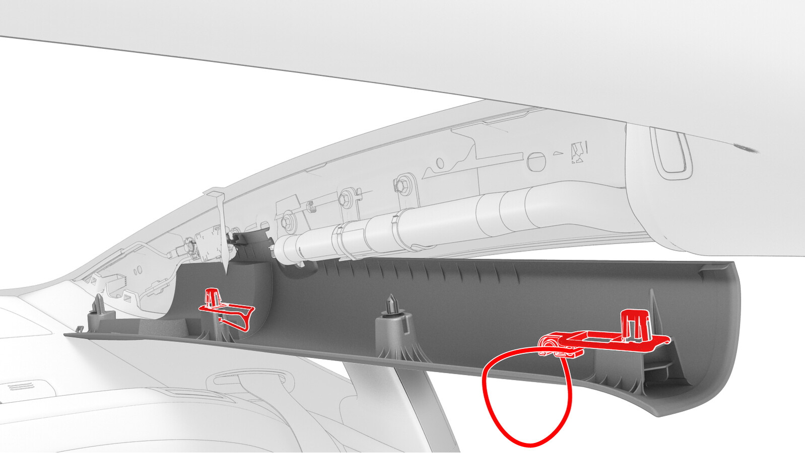 - 松开将老旧的 LH 侧纵梁系带固定到 LH 侧纵梁的夹子,然后从车上拆下系带并弃用。