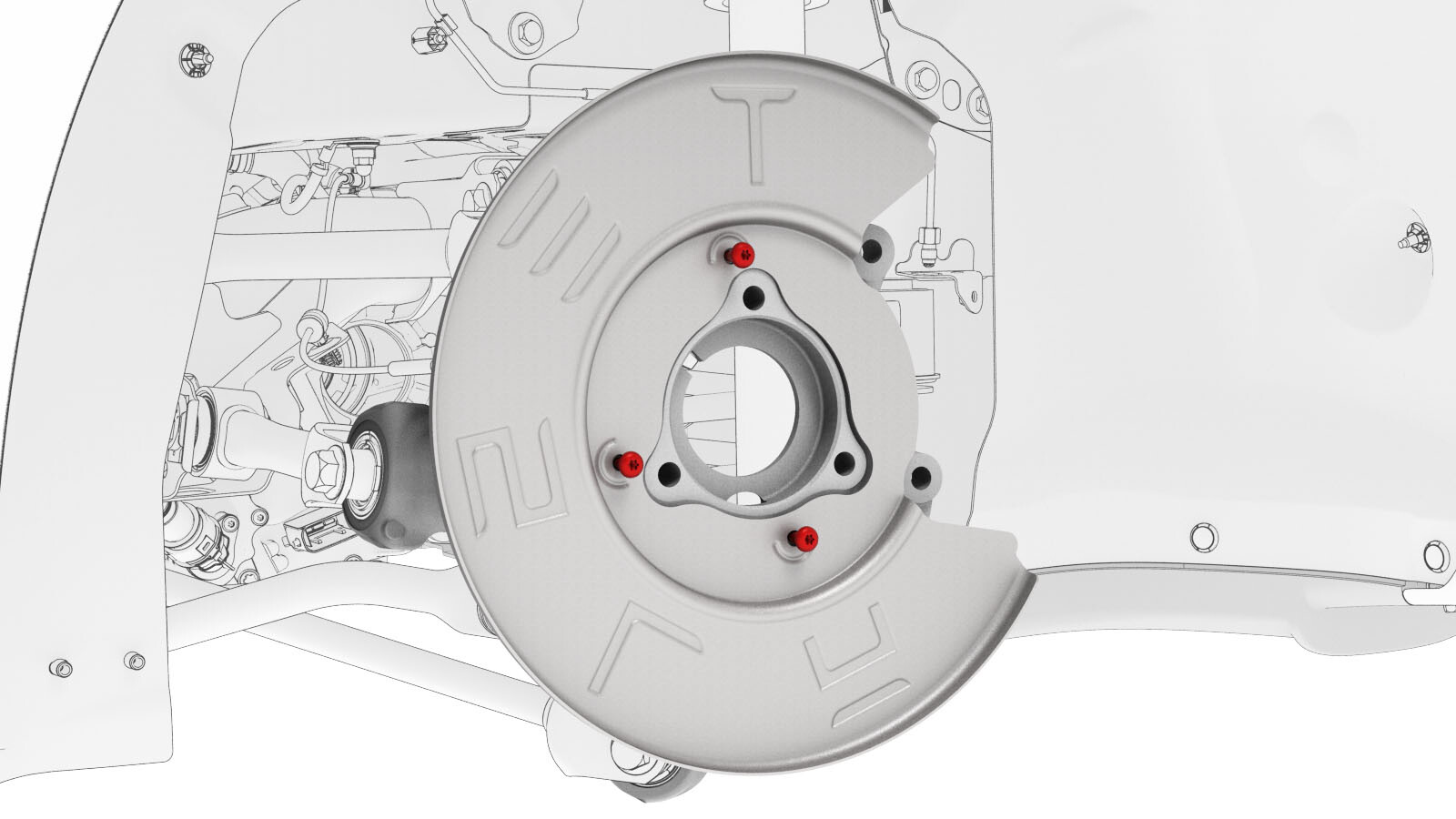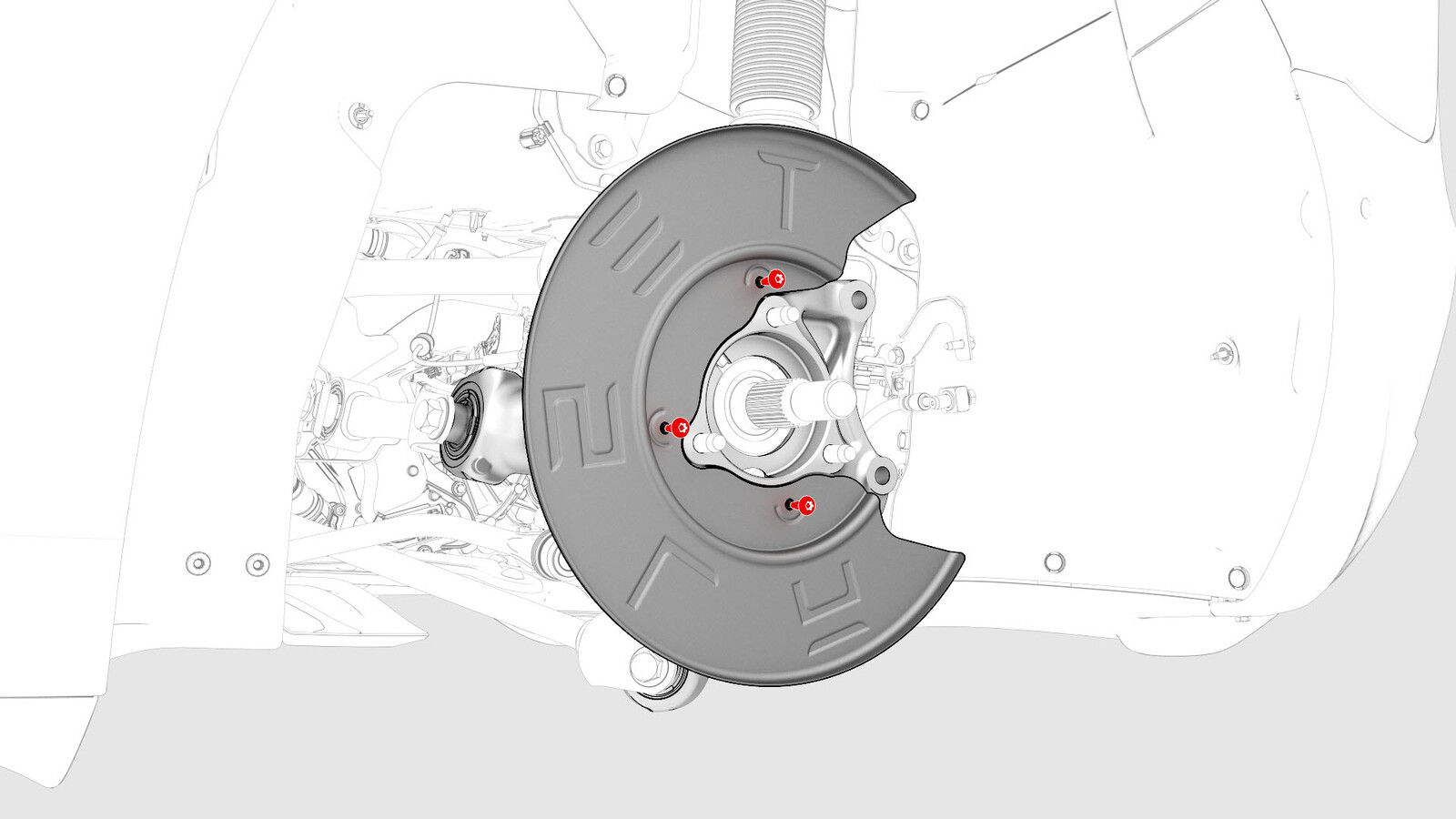 | LH rear brake dust shield to the knuckle |