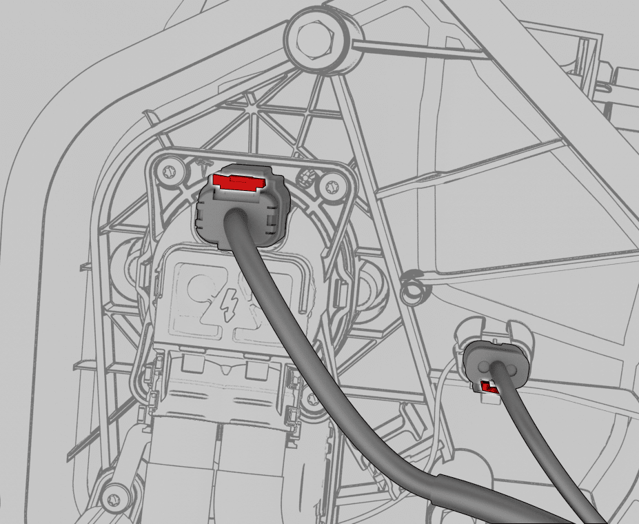 将低压线束连接器(2 个)连接到充电接口上,然后安装用于固定连接器的锁片(2 个)。