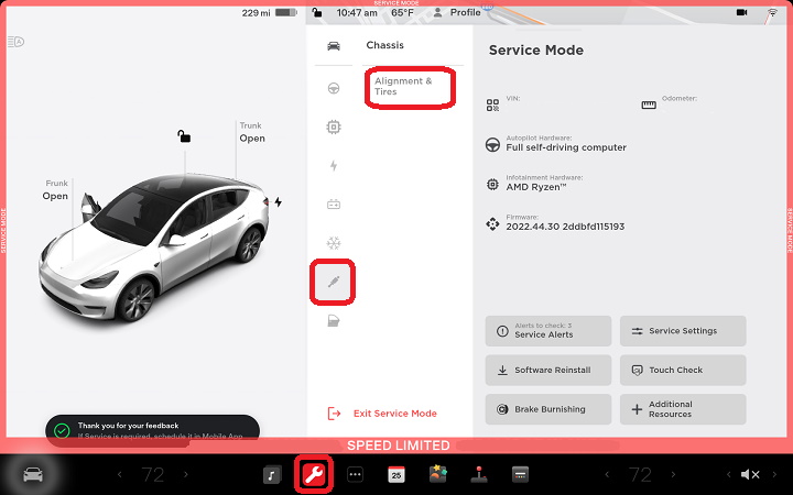 转至定位门户:点击Service > Chassis > Alignment and Tires。
