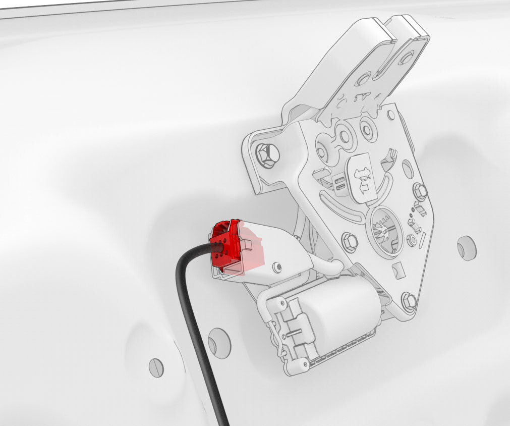 - 断开电气线束与行李箱拉紧闩锁的连接。