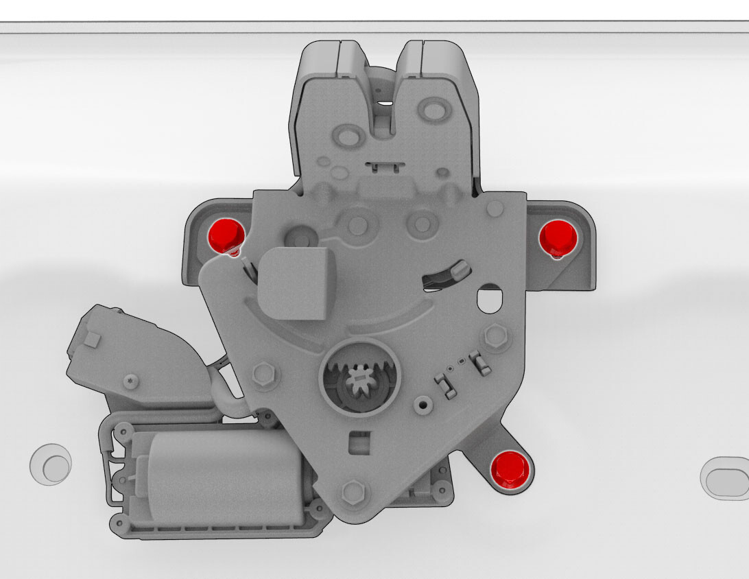 拆卸将后备箱卷带闩锁固定到后备箱盖的螺栓,然后向下滑动闩锁以松开锁片并拆下闩锁。