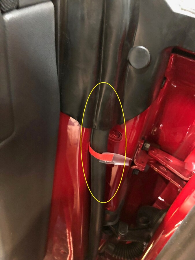 从车门上揭下标记胶带。