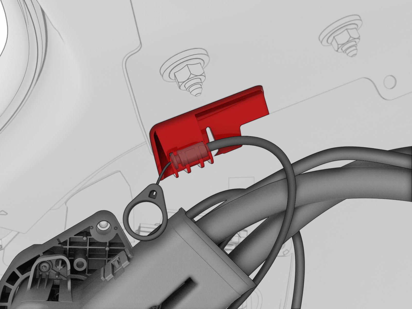 - 将充电接口手动释放缆索夹从支架总成上松开。