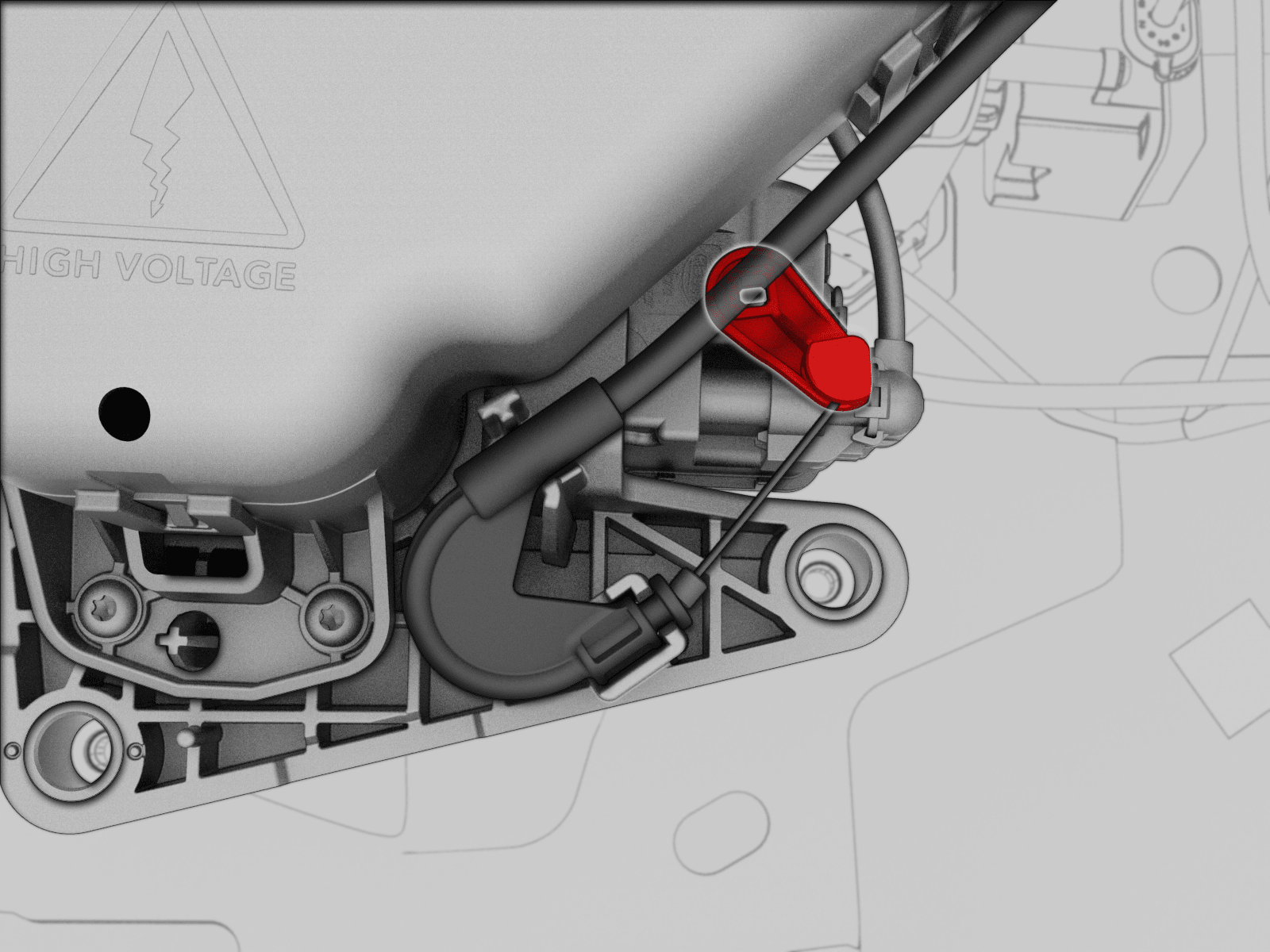- 拆下充电接口安全帽。请参阅安全盖 - 母排 - 充电接口至高压电池(拆卸和更换)。