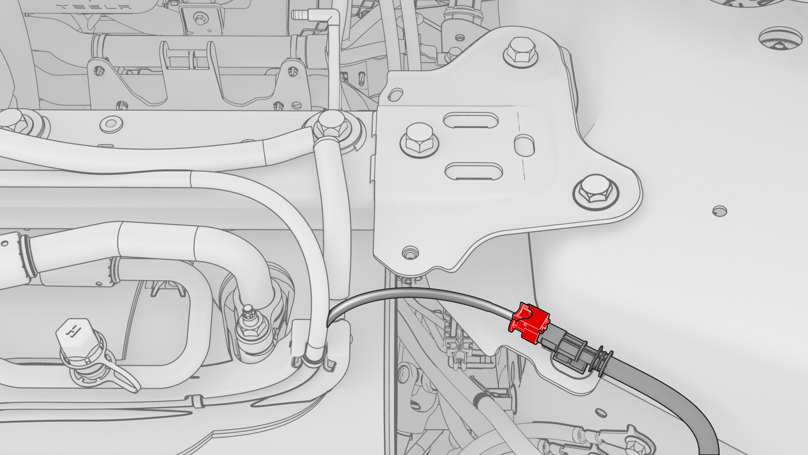 松开连接器锁片,然后断开 LH 前支柱塔附近的高压互锁回路连接器。