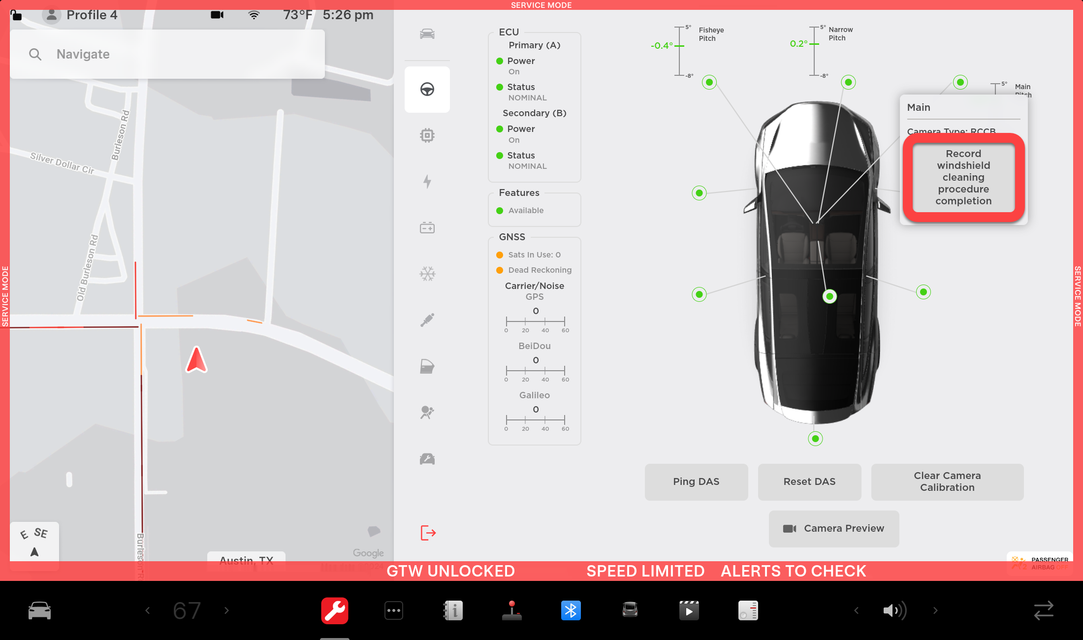 - 点击Reset DAS,以重置辅助驾驶系统。例行程序完成后,请将其关闭。