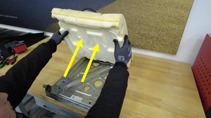 - 从第二排右侧座椅靠背框架上拆下座椅靠背泡沫。