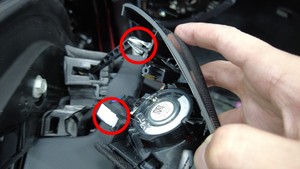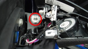 | 将左侧盲点碰撞警报装置固定到左前高频扬声器的螺栓 |