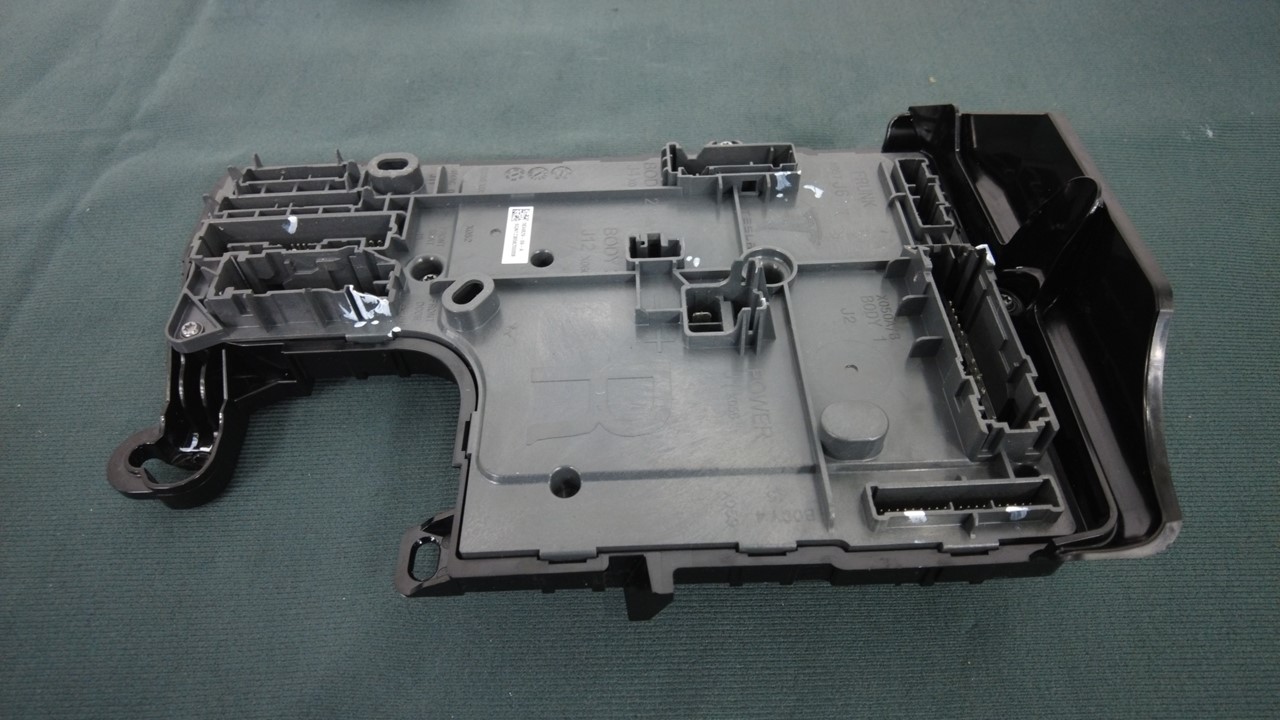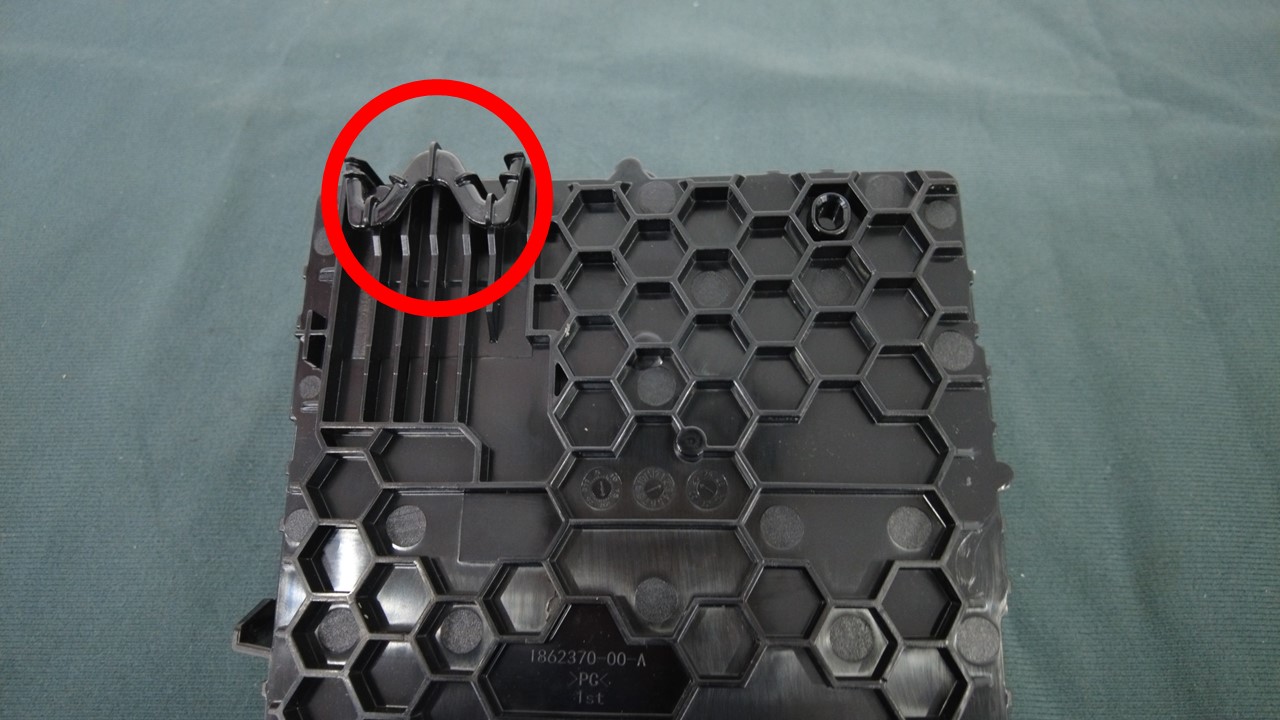 - 将右侧车身控制器模块移动装入仪表板支架下方,然后对齐 W 型卡子与车身切割线。
