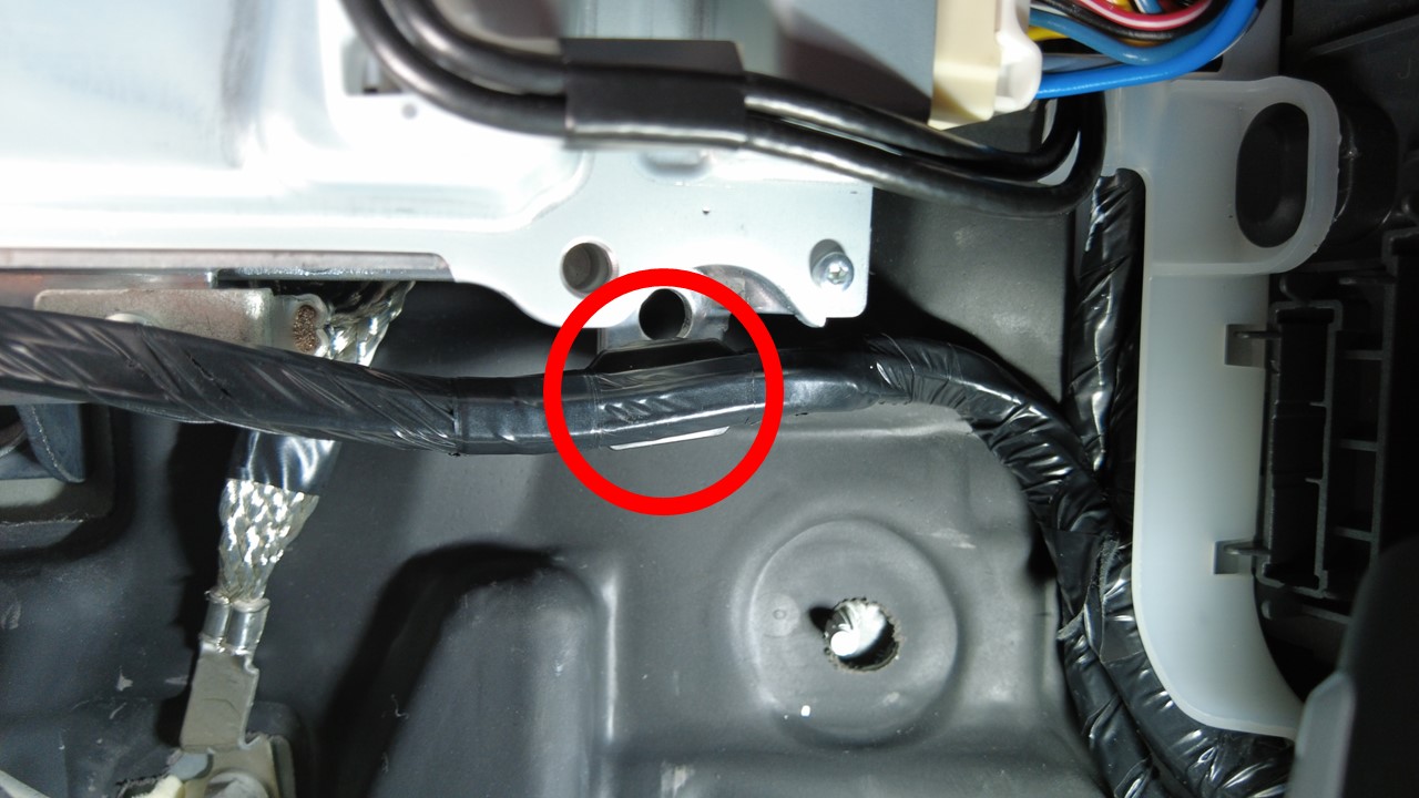 - 紧固仪表板支架下方的电气线束夹(2 个)。