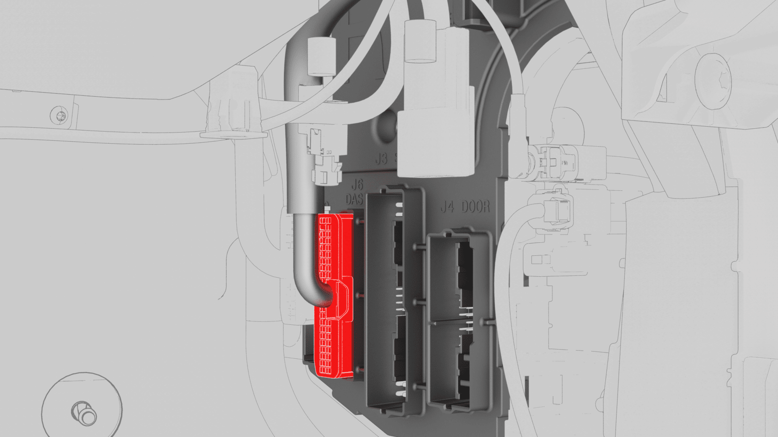 - 松开连接器锁,然后将 J4 车身电气连接器从右侧车身控制器模块上断开。