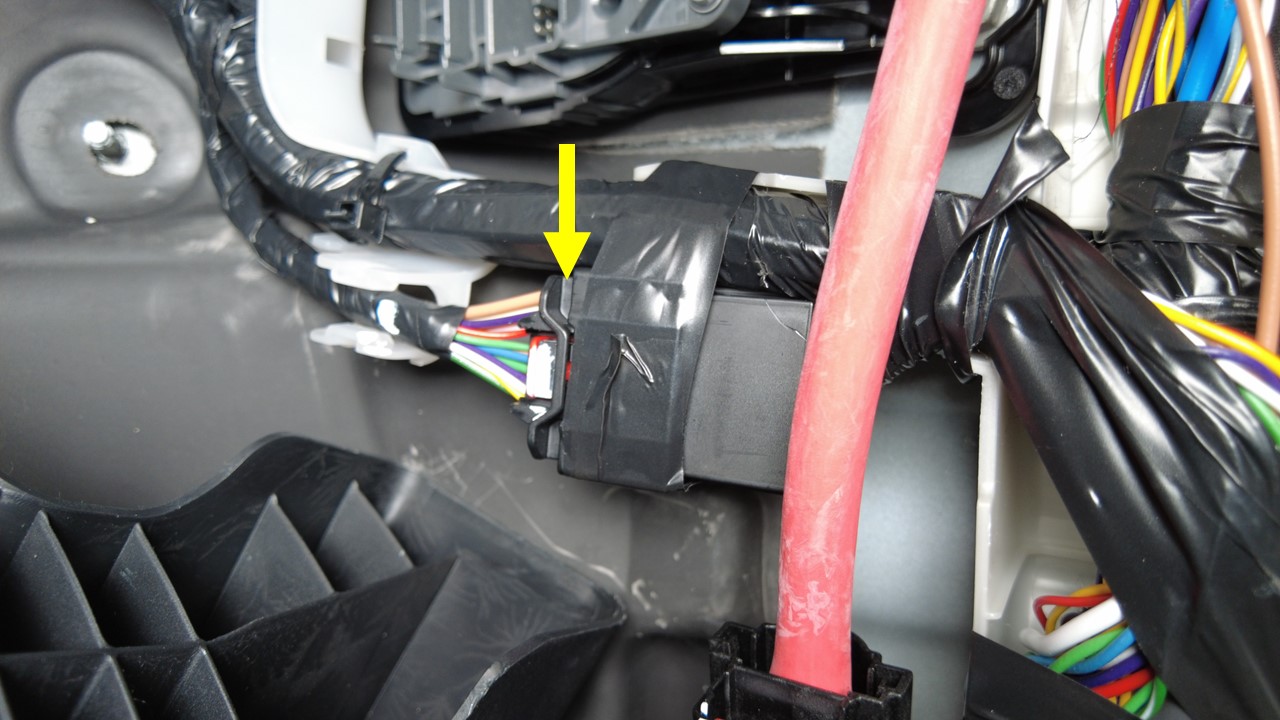 - 松开仪表板支架下方的电气线束夹(2 个)。