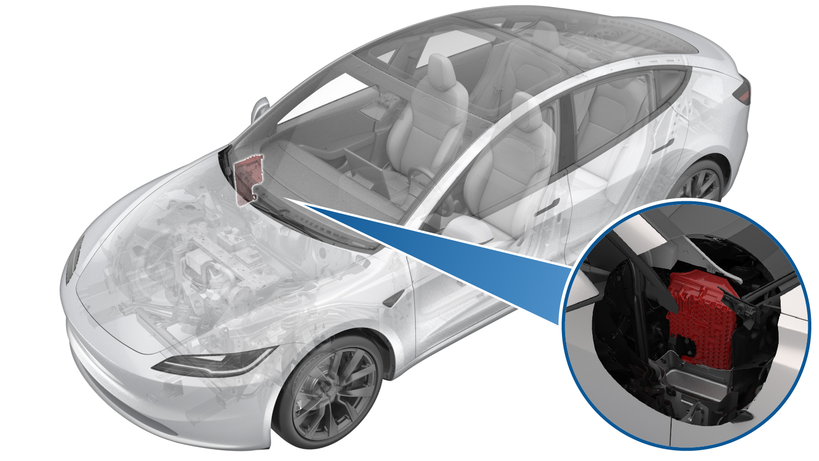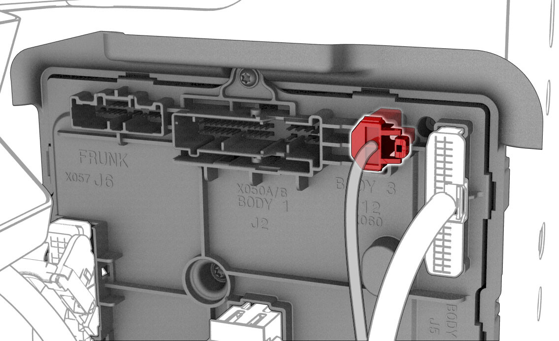 - 将 J6 前备箱储物单元电气连接器连接到右侧车身控制器模块。