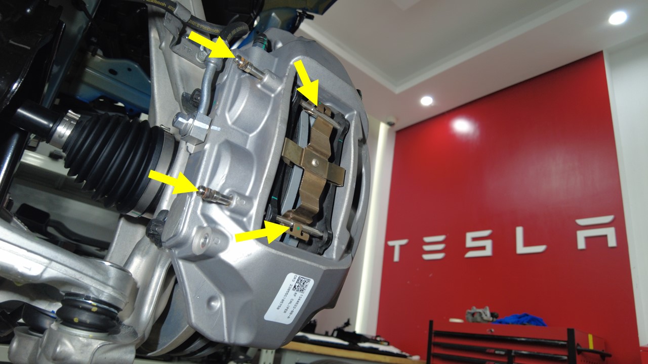 - 使用肥皂水和手刷清洁制动钳销和减振弹簧。