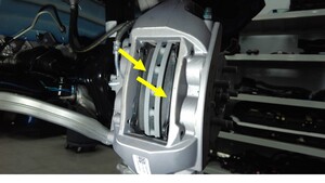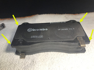 - 在左前制动片的左右两侧边缘处,均匀涂抹一层 Silaramic 润滑脂。