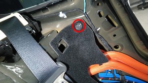 - 使用撬具拆卸将后备箱侧饰板固定到车辆的卡子(2 个)。