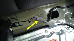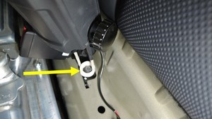 - 松开将电气连接器内孔侧固定到车身螺柱的塑料支架。