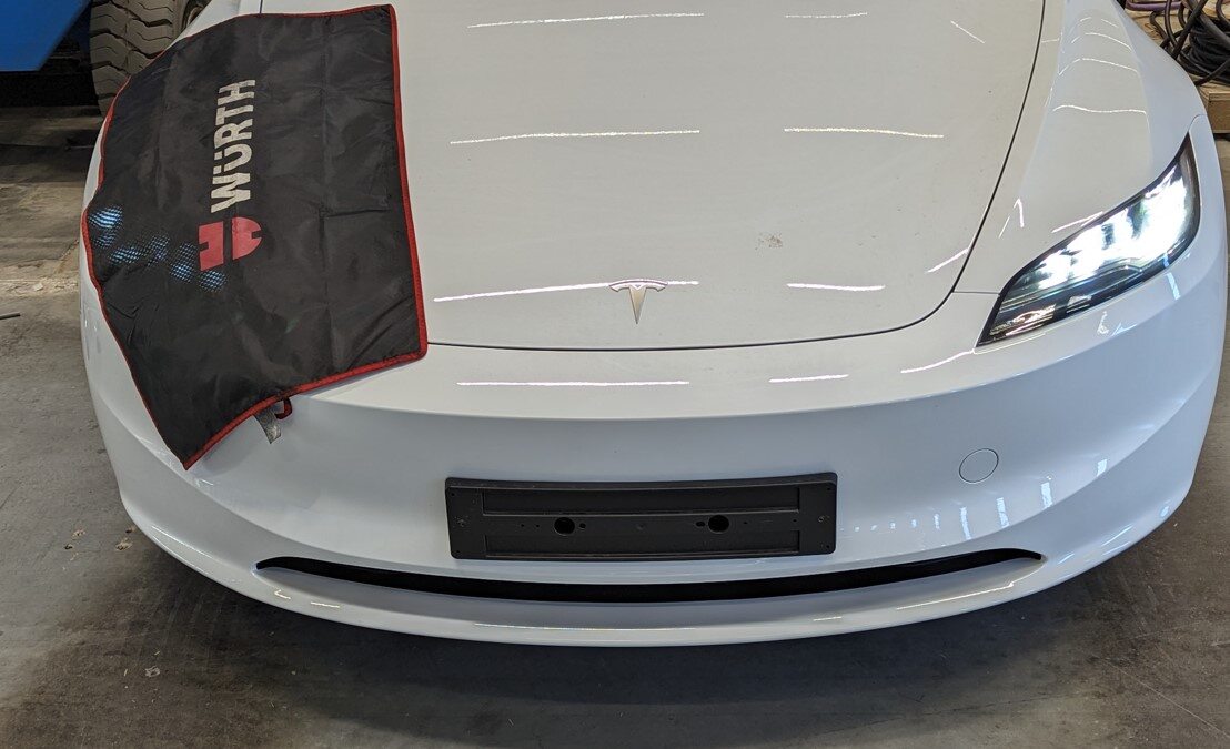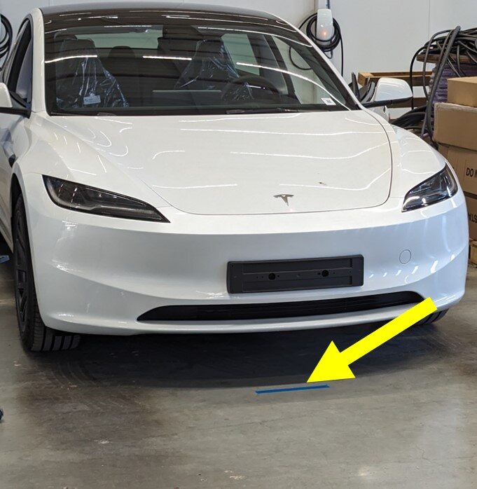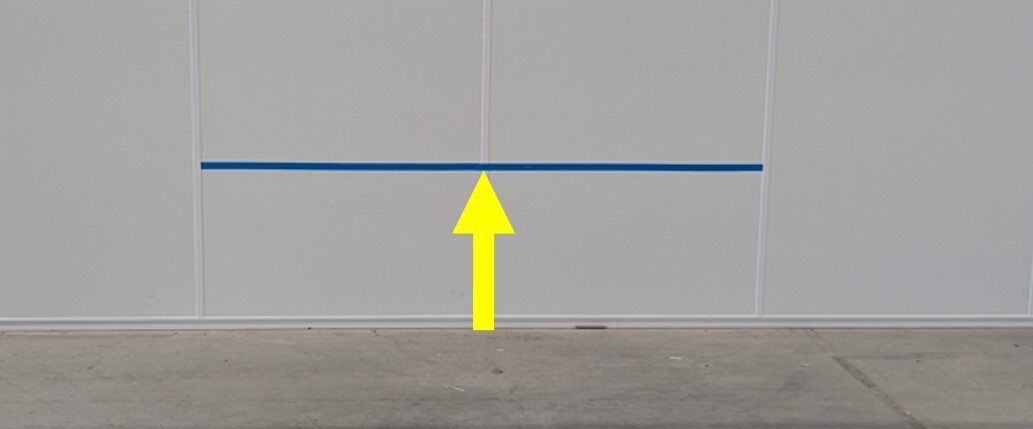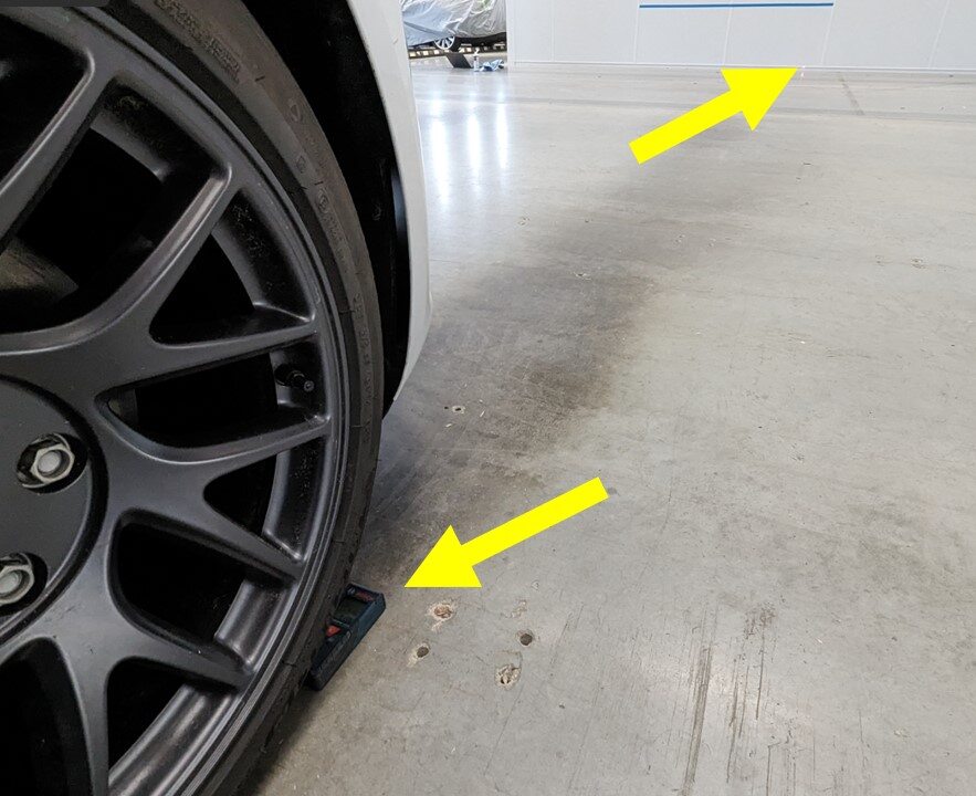 - 车辆应与墙壁保持垂直,以使前饰板与上一步粘贴在地面的胶带齐平。